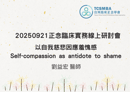 正念臨床實務講座:2025/09/21 以自我慈悲因應羞愧感 Self-compassion as antidote to shame