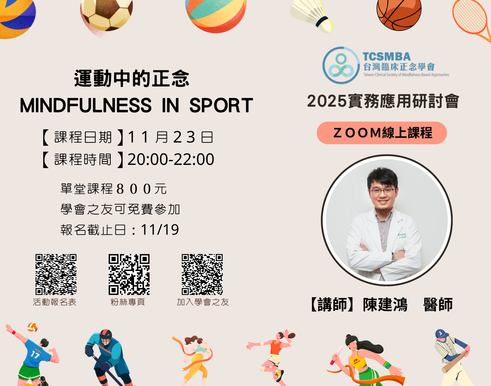 正念線上研討會—【運動中的正念 Mindfulness in sport】(報名中)