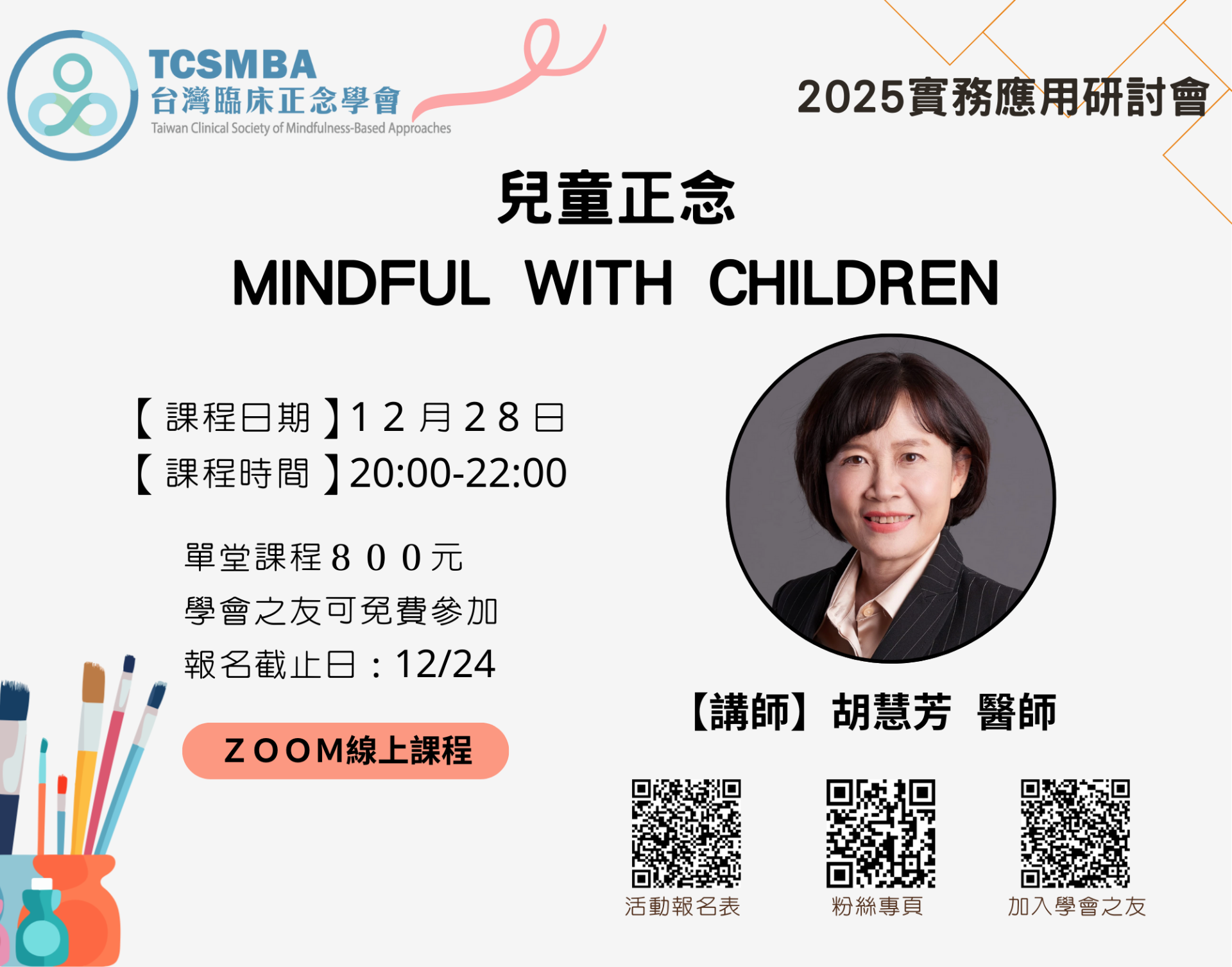 正念線上研討會—【兒童正念 Mindful with Children】(報名中)